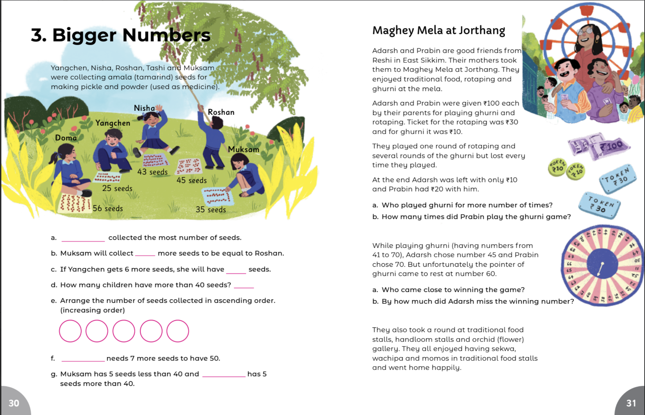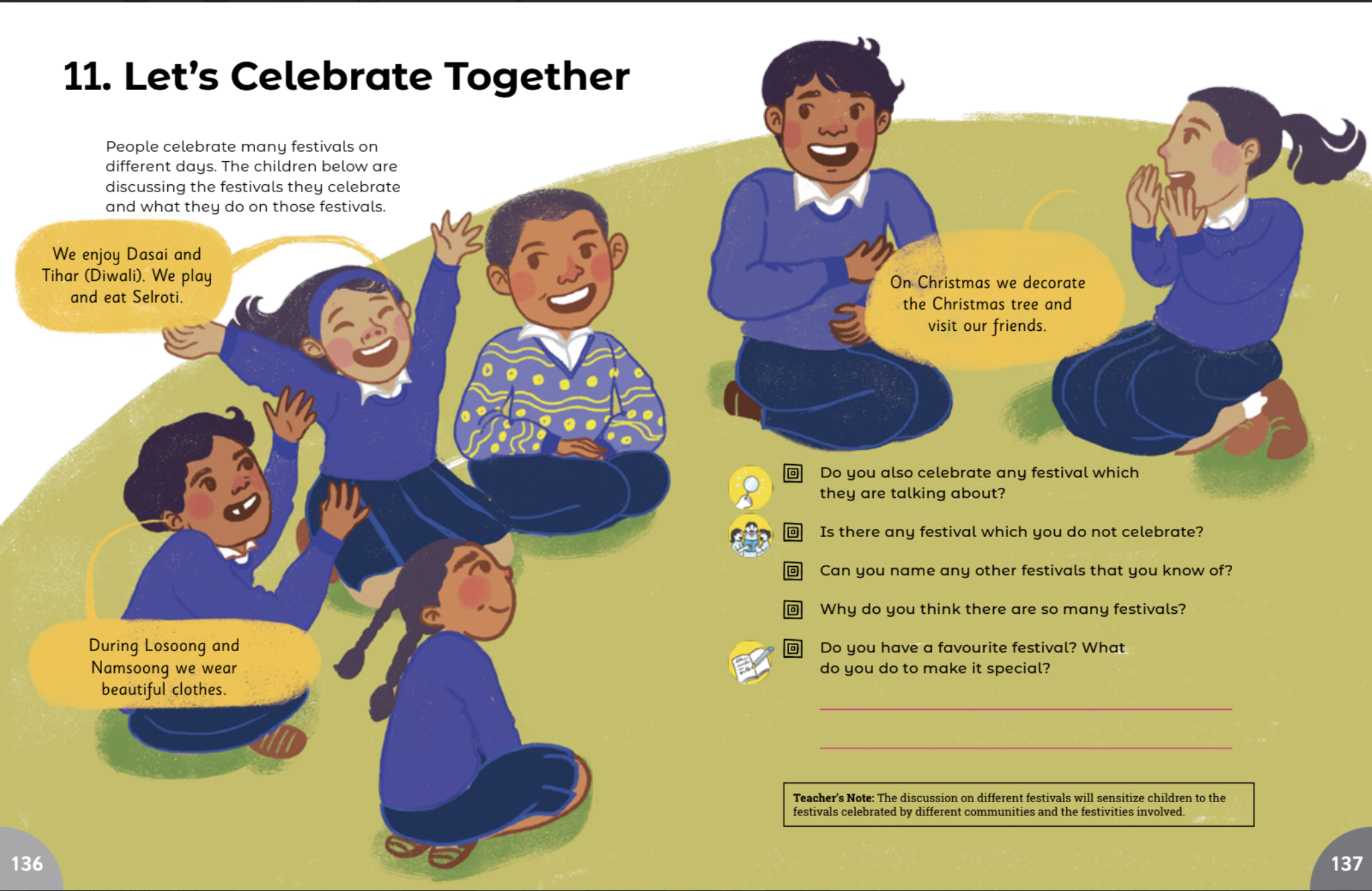 As part of the SCERT (State Council of Educational Research and Training) textbook project in Gangtok, Sikkim, I helped create culturally grounded illustrations for primary school learning materials used across the state’s government schools. Working with a team of illustrators and designers, our work aimed to reflect the local social, environmental, and cultural context of Sikkim’s children, reinforcing lessons tied to environmental studies, biodiversity, and community life — topics integrated into the revised curriculum in collaboration with educators, teachers, and academic partners. The illustrations were designed to make learning visual and meaningful, connecting textbook content with the lived experiences of young learners and supporting sustainable education goals within the state’s primary education framework.